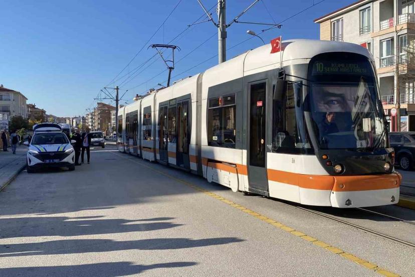 Eskişehir’de sürücüsünün bayrak asmak için açık bıraktığı servisin kapısına çarpan tramvayın içerisindeki 3 yolcu yaralandı.