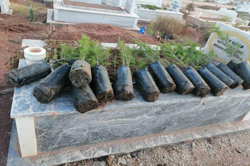 Eskişehir’de hayırseverler, Anneler Günü’nde mezarlıklara fidan dikti.