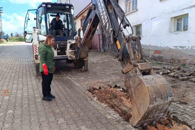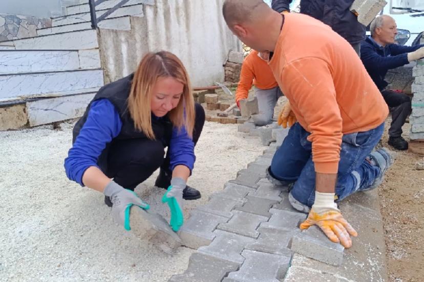Bilecik’in Pazaryeri ilçesinde Belediye Başkanı Zekiye Tekin, kendi elleriyle parke taşlarını döşeyerek sahada örnek oldu.