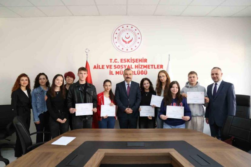 Eskişehir’de Çocuk Hakları İl Komitesi üyesi iken lise öğrenimlerini tamamlayarak komitedeki görev süreleri sona eren gençlere Aile ve Sosyal Hizmetler İl Müdürü Orhan Bayrak tarafından teşekkür belgeleri verildi.
