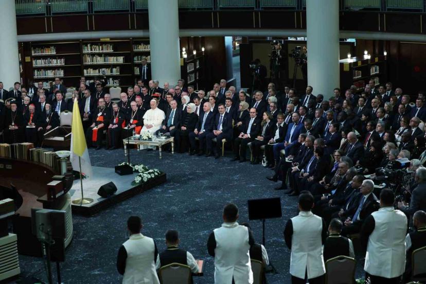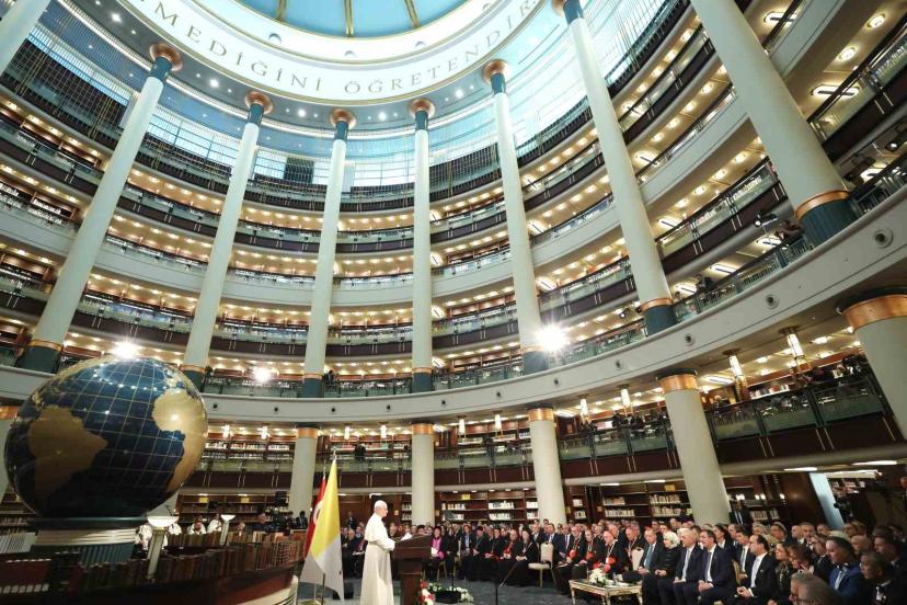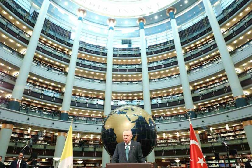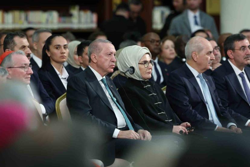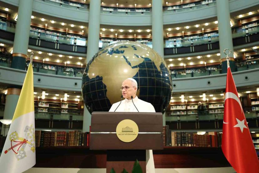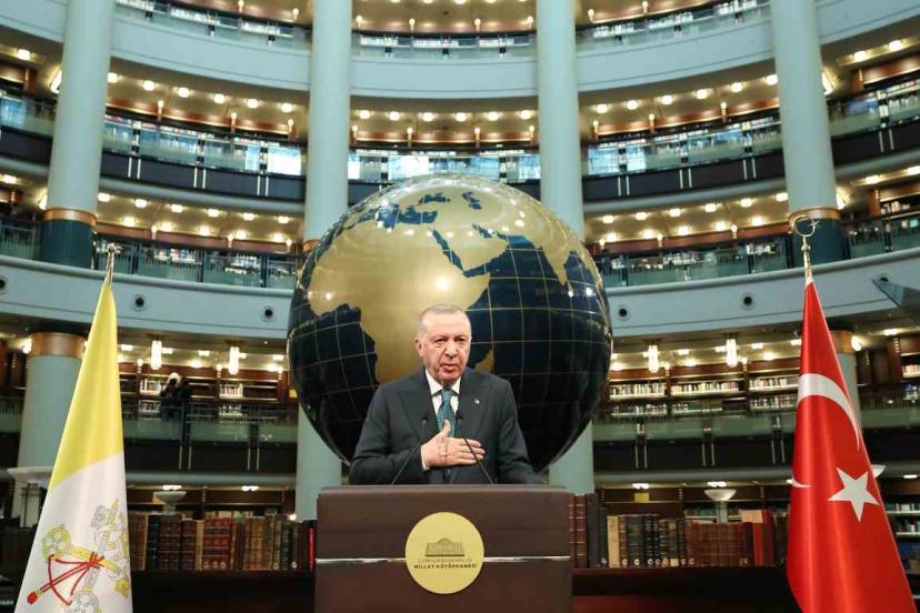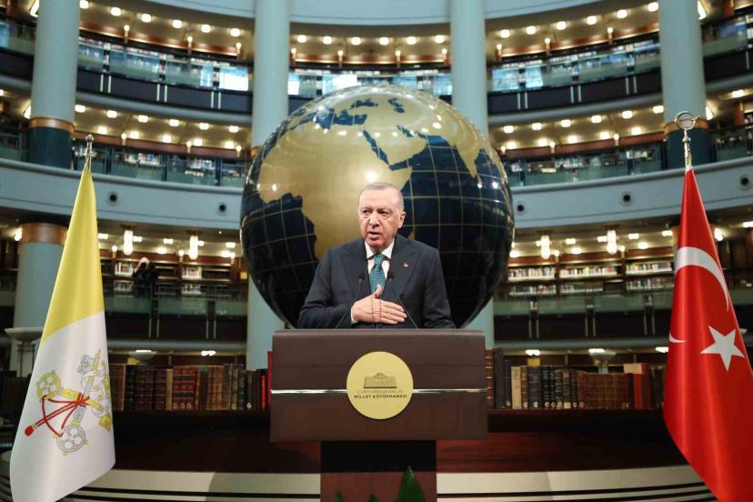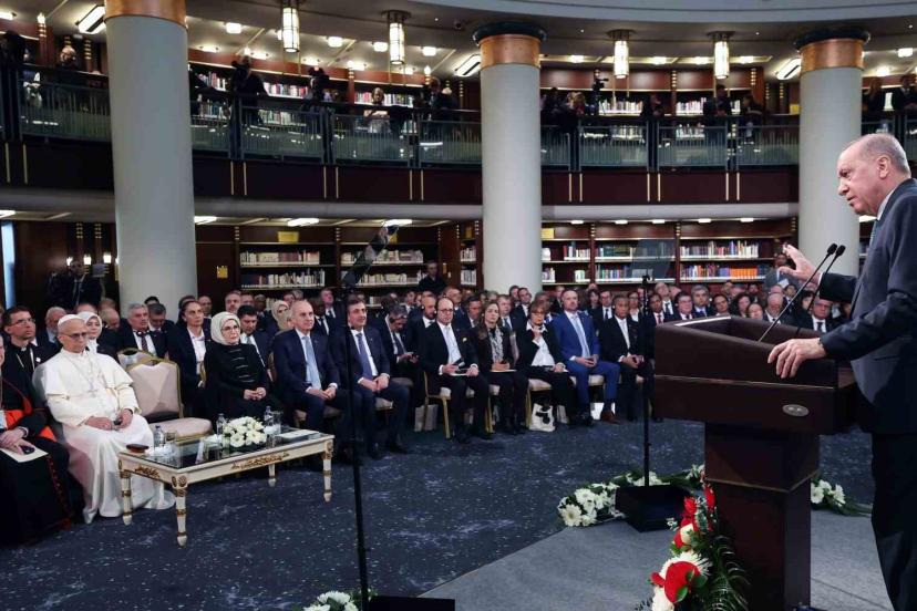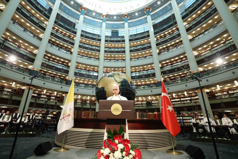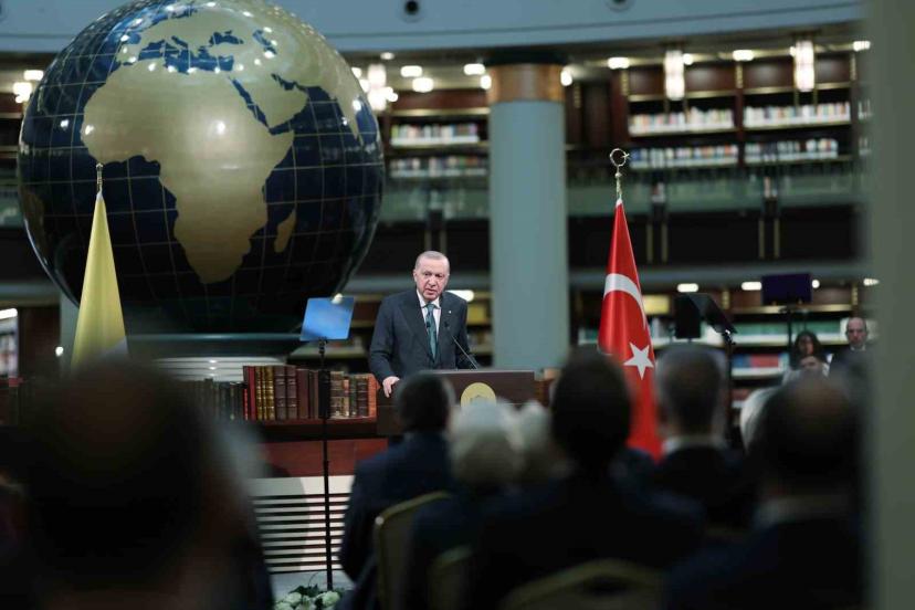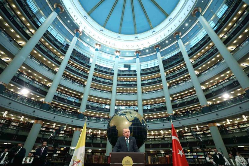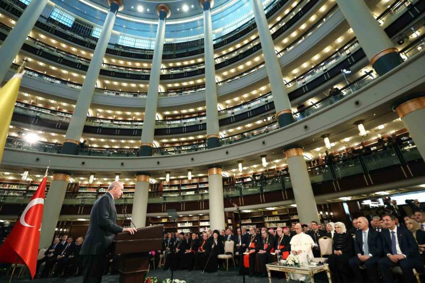 Cumhurbaşkanı Recep Tayyip Erdoğan, Vatikan Devlet Başkanı Papa 14. Leo Cumhurbaşkanlığı Millet Kütüphanesi Cihannüma Salonun’da Davetlilere hitap etti.