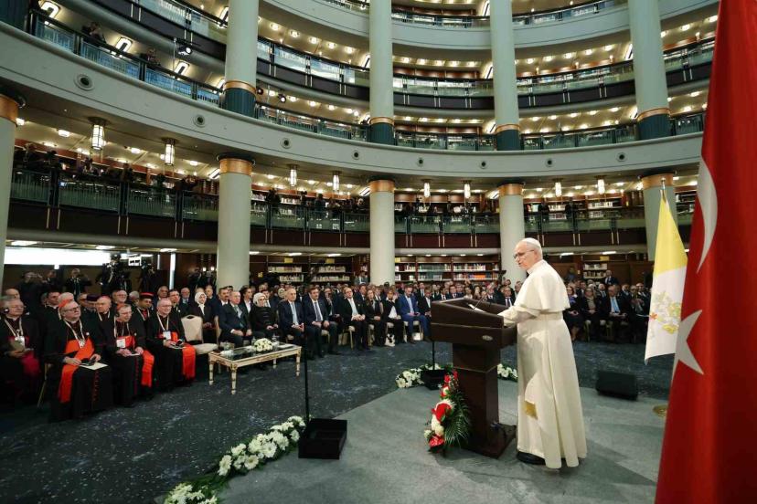 Cumhurbaşkanı Erdoğan, 14. Leo’nun ziyaretinin önemine dikkat çektiği konuşmasında," yüzyıllardır farklı inançlara ait ibadethanelerin kandillerinin aynı semayı aydınlattığı Türkiye’yi ziyareti hem ülkemizin özel konumuna hem de ortak değerlerimize dikkat çeken anlamlı bir vesiledir. Biz de farklı kültür ve medeniyetlerin bir arada, yan yana ve huzur içinde yaşadığı bir tarihin mirasçıları olarak küresel barış ve istikrar ortamının serpilmesi için üzerimize ne düşüyorsa yapıyoruz ve yapacağız" dedi.