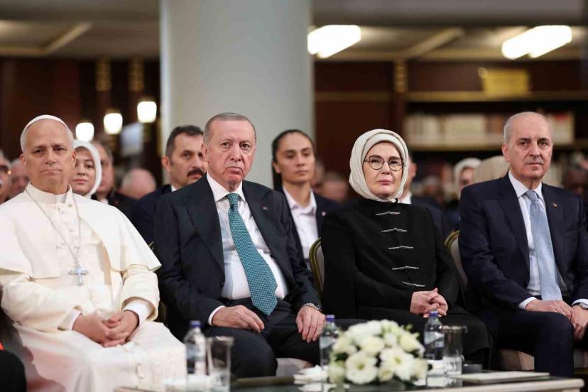 Papa 14. Leo’yu ve heyetini Türkiye’de misafir etmekten büyük bir memnuniyet duyduğunu belirten Cumhurbaşkanı Erdoğan," Katolik dünyasının ruhani lideri, Vatikan Devlet Başkanı Papa 14. Leo, ülkemizdeki diplomatik misyonların değerli temsilcileri, çok kıymetli misafirler, hanımefendiler, beyefendiler; sizleri şahsım, ülkem ve milletim adına en kalbi duygularımla, hürmetle selamlıyorum. Bir kez de sizlerin huzurunda kıymetli misafirimiz ve heyetine ülkemize hoş geldiniz diyorum" dedi.