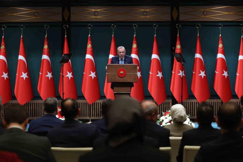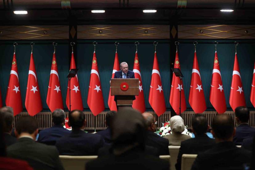 Cumhurbaşkanı Recep Tayyip Erdoğan, Cumhurbaşkanlığı Külliyesi’nde düzenlenen Kabine Toplantısı’nın ardından "Millete Sesleniş" konuşmasını gerçekleştirdi. Erdoğan, toplantıda dış politikadan sanayiye, ekonomiden güvenliğe birçok konuyu mütalaa ettiklerini belirterek, kabinede alınan kararların ülke, millet ve tüm insanlık için hayırlara vesile olması temennisinde bulundu. Cumhurbaşkanı Erdoğan, "Buradan hangi siyasi görüşten, hangi etnik kökenden olursa olsun Türkiye için çalışan, Türkiye için dertlenen, kalbi Türkiye için atan herkese, tüm vatandaşlarıma içtenlikle teşekkür ediyorum. Toplantımızın detaylarına geçmeden evvel bir hususun altını çizmek istiyorum: Küresel sistemdeki çatırdamaların olumsuz etkilerini en fazla hissettiğimiz kırılgan bir dönemden geçiyoruz. Yakın çevremize baktığımızda savaşların, çatışmaların, gerilimlerin, siyasi ve ekonomik dalgalanmaların hiç eksik olmadığı görülüyor. Türkiye’nin içinde yer aldığı bölge, şairin ‘akrebin kıskacında yoğrulmuş’ ifadesinde anlamını bulan sürecin tam ortasındadır" dedi.