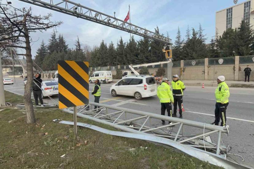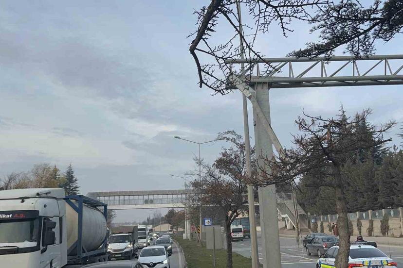 Eskişehir’de damperi açık kalan tırın çarptığı Plaka Tanıma Sistemi (PTS) direği yola devrildi. Kazada şans eseri kimse yaralanmazken, 45 yaşındaki tır sürücüsü işlemleri için emniyete götürüldü.