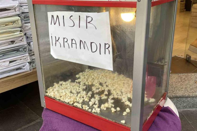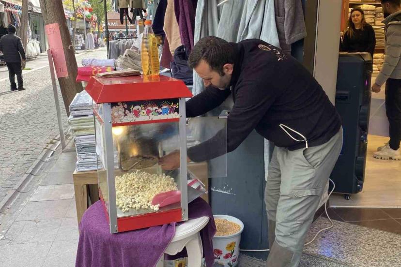 Dükkan önü kalabalık görünsün diye her gün 20 kilo patlamış mısır dağıtıyorlar