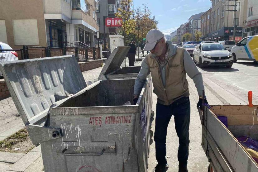 Emekli olan Mustafa Uludağ, ek gelir sağlamak amacıyla geri dönüşüm işçiliği yapıyor. Sabah saat 05.00 gibi çıkıp akşam 23.00’de eve girdiğini belirten Uludağ’ın el arabasının önündeki ‘Ekmek Teknesi’ yazısı ise dikkat çekiyor. El arabasıyla hayat mücadelesini sürdüren Uludağ, 68 yaşında olmasına rağmen gayretiyle görenlerin takdirini topluyor.