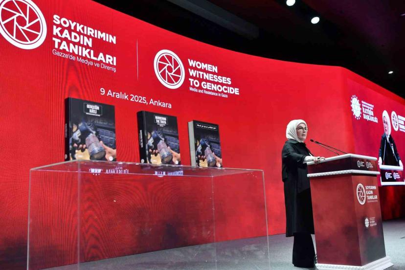 Emine Erdoğan, bugün andıkları 37 kadın gazetecinin, haber bölgelerine yeri geldi karnındaki bebeğiyle, yeri geldi çocuğunu birine emanet ederek koştuğuna dikkati çekerek şöyle devam etti: "Bu cesur kadınlar, daha göbek bağı kesilmemiş yeni doğan bebeklerin hava saldırılarında anneleriyle birlikte öldüklerine tanık oldukları için ölmeyi göze aldılar. Bebeklerin ömrü, kelebeklerinki kadar olmasın istediler. O yüzden yalanın anatomisi hakkında kimsenin bilmediği gerçekleri ortaya çıkardılar. ’Bir Filistin vardı, bir Filistin gene var’ mısralarını doğrulamak için yaptıkları haberlerle zalime meydan okudular. Gazze’de işlenen ağır insanlık suçlarını tarihe not ederken kendi öyküleri de Gazze’nin öyküsüne karışan bu kahramanlar, hakikate kadınların gözünden ayna tuttular. Tıpkı, gazeteci Meryem Ebu Dakka gibi. O da geçtiğimiz ağustos ayında bir hastanede haber çekimleri sırasında İsrail’in ahlaksız saldırısında hayatını kaybetti. ’Kamera benim görevim, mesleğim değil.’ diyen Meryem kardeşimiz, vefatından önce oğluna yazdığı mektupta şöyle demiş, ’Elimden gelen her şeyi, sen mutlu, iyi ve güvende olasın diye yaptım.’ Şahsen, bu yiğit kadınların, ölümün kıyısında verdikleri tüm bu mücadelenin tek bir amacı olduğunu düşünüyorum. Filistin’in çocukları, Filistin’in baharı olabilsin diye..." Gazze’de 2 senede 70 binden fazla insanın öldürüldüğünü hatırlatan Emine Erdoğan, ateşkesin yürürlüğe girmesinden bu yana bile yaklaşık 400 kişinin daha hayatını kaybettiğini söyledi. Bunlardan birinin de 28 yaşındaki gazeteci Salih El Ceferavi olduğunu söyleyen Emine Erdoğan, şunları kaydetti: "O, 700 günden fazla süren soykırım boyunca yaptığı haberlerle, çektiği videolarla, en çok da umudun yüzünde çiçek gibi açmasıyla hepimizin sevdiği bir evladımızdı. Ondan geriye maalesef ki kurşun geçirmez sandığımız basın yeleği ve ailesine sevgi dolu mesajları, vasiyet olarak bıraktığı videosu kaldı. Sadece kasım ayında Filistinli gazetecilere yönelik 57 ihlal ve saldırı gerçekleştirildi. İsrail’in, Filistin’de yalnızca Filistinlileri değil, Filistin’e dair tüm hafızayı da öldürmek istediğini biliyoruz. Soykırımın yanında eko-kırım yaparak toprağı yaşanamaz hale getiriyorlar. Tarihi ve kültürel mirası yok ederek milli kimliği kırıma uğratıyorlar. Filistinlilerin tarihî ayak izlerini siliyorlar ki yarın öbür gün ’Siz aslında burada hiç yoktunuz.’ diyebilsinler. Biz, elbette buna müsaade etmeyeceğiz. Selmaları, Meryemleri, Salihleri ve nicelerini aklımızda ve dualarımızda muhafaza edeceğiz. Gazze’de yok edilen 1 milyon zeytin ağacının kırık dallarıyla hayatı aşılayıp yeniden filizlendireceğiz. Çoğu zaman ’Ve o güzel insanlar, o güzel atlara binip gittiler’ denir. Ama biz o güzel insanların gittikleri yerden gemilere binip insanlık vicdanının çağırdığı yere Gazze’ye geldiklerini gördük. O yüzden inanıyorum ki, biz hakikatin ışığını yansıttıkça bugün Gazze’nin üstüne çöken karanlık, yarın insanlığın topyekün direnişiyle inşallah aydınlığa dönüşecektir." Cumhurbaşkanlığı İletişim Başkanlığı tarafından Gazze’de son 2 yılda basın mensuplarına yönelik saldırı ve katliamların kayda geçirilmesi amacıyla hazırlanan "Gerçeğin Katli: İsrail’in Gazeteciliğe Karşı Savaşı" kitabının da tanıtıldığı programa, Anadolu Ajansı (AA) Yönetim Kurulu Başkanı ve Genel Müdürü Serdar Karagöz, TRT Genel Müdürü Mehmet Zahid Sobacı, Basın İlan Kurumu Genel Müdürü Abdulkadir Çay, gazeteci ve "Başka Toprak Yok" belgeselinin yönetmeni Basel Adra, gazeteci Somaya Abunima ile ulusal ve uluslararası medya temsilcileri de katıldı. Konuşmaların ardından "Dünyanın Sessizliğine Direnen Sesler: Gazze’de Kadın Gazetecilerin Direnişi" ve "Medya Baskısı: Gazze’de Gerçeğin Kuşatılması" oturumlarının yapılacağı panele geçildi.