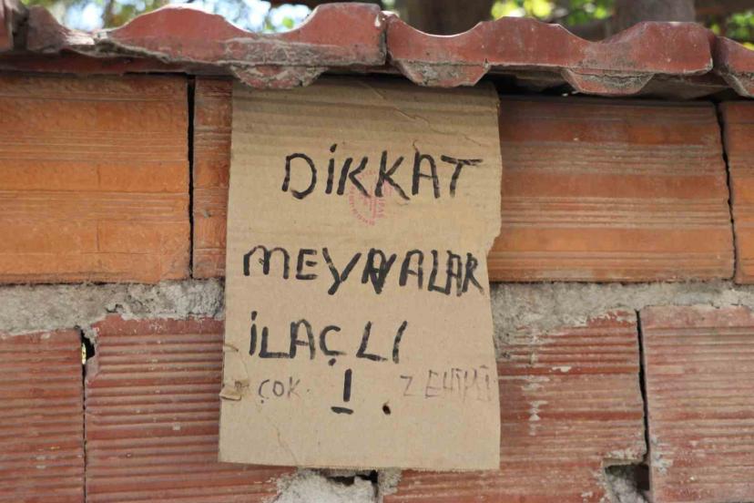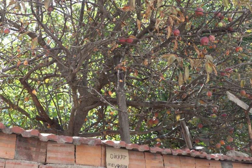Erenköy Sokak’ta bulunan müstakil bir evin bahçesinde, dalları olgunlaşmış kırmızı elmalarıyla dolu bir ağaç yer alıyor. Ancak bahçe duvarına asılan el yazısı tabela, görenleri hem şaşırtıyor, hem de düşündürüyor. Bahçe sahibinin, "Dikkat meyveler ilaçlı, çok zehirli" yazısını, ağaçtan meyve koparılmasını engellemek amacıyla astığı şeklinde yorumlanıyor.