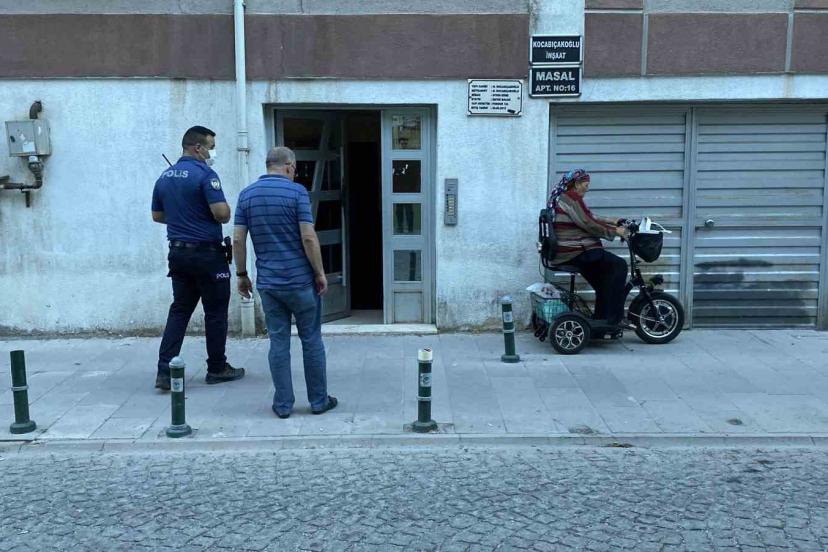Yaşlı kadın, bir süredir oğlunun yanında kaldığını belirterek akülü araçla apartmanın önüne geldi. Polis ekipleriyle görüşen R.Ö., yaşanan duruma hayret ettiğini ifade etti. İl Sağlık Müdürlüğü yetkililerine bilgi veren mahalle muhtarı Hüseyin Alparslan, olayın güvenli bir şekilde çözüldüğünü aktardı.