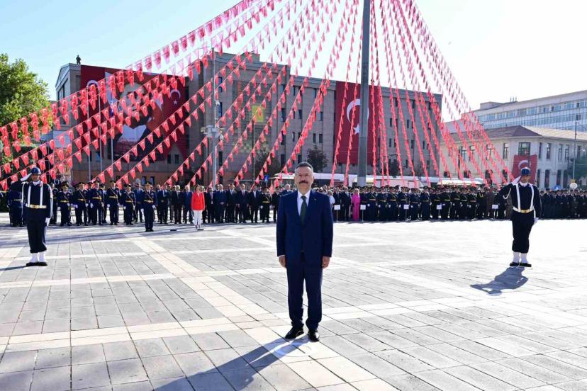 Vilayet Meydanı’nda gerçekleştirilen program, askeri bando eşliğinde saygı duruşu yapılması ve İstiklal Marşı’nın okunmasıyla başladı. Ardından, Atatürk Anıtı’nın önüne çelenkler bırakıldı. Günün anlam ve önemini belirten konuşmalar ile devam eden programda öğrenciler tarafından şiirler okundu. Programdan sonra Vali Hüseyin Aksoy, Muharip Hava Kuvveti ve Garnizon Komutanı Hava Orgeneral Rafet Dalkıran ile Eskişehir Büyükşehir Belediye Başkanı Ayşe Ünlüce, 30 Ağustos Zafer Bayramı ve Türk Silahlı Kuvvetleri Günü’nün 103’üncü yıl dönümü münasebetiyle valilik makamında tebrikleri kabul etti.
