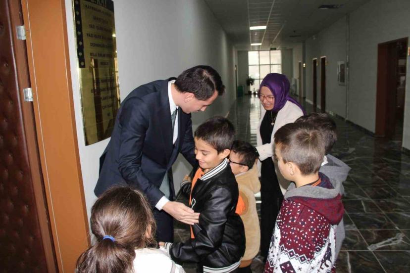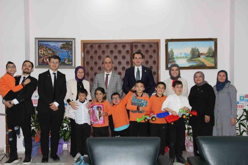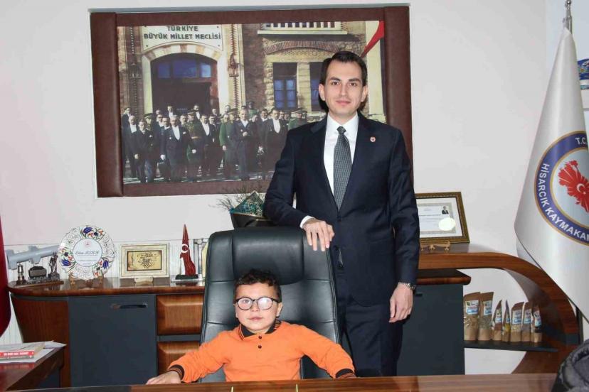 Özel öğrencilerle tek tek ilgilenen Kaymakam Erkan Atam, öğrenciler ile sohbet ederek kendilerine bu nazik ziyaretleri için teşekkür edip hediye taktim etti. Kaymakam Atam, özel öğrencileri makam koltuğuna oturtarak onlarla fotoğraf çektirdi.