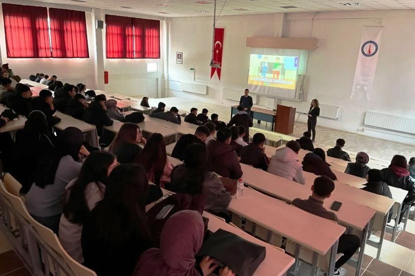 Öğrenciler ile akademik ve idari personelin yoğun katılım gösterdiği programda, bağımlılıkların psikolojik temelleri, risk faktörleri ve korunma yollarına ilişkin önemli bilgiler paylaşıldı. Katılımcıların konu hakkında farkındalık kazandığı etkinlikte, sorular da yanıtlandı.
