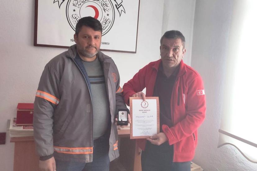 İlçede elektrikçilik yapan Mehmet İşler’e bronz madalya ve beratı, Kızılay Hisarcık İlçe Temsilcisi Mustafa Şen tarafından takdim edildi. Kütahya Kızılay Kan Merkezi’ne düzenli şekilde kan bağışında bulunduğu belirtilen İşler’in örnek bir gönüllü olduğu ifade edildi.