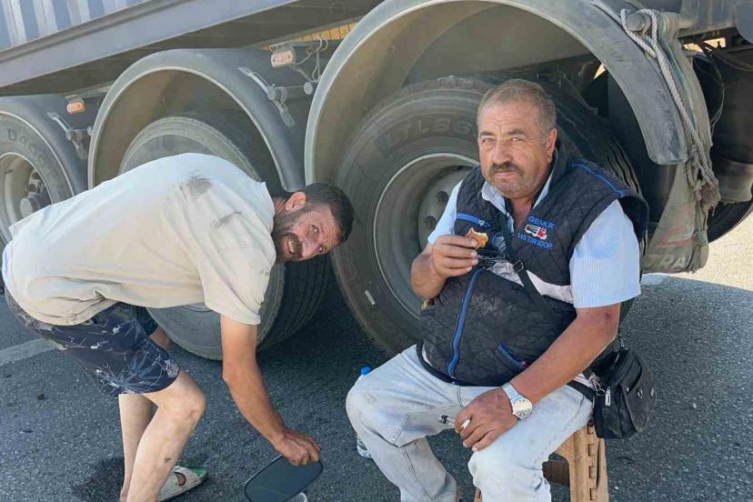 İki tır çarpıştı, şans eseri ezilen kabinden çıkan sürücüye diğer meslektaşı kurabiye ikram etti