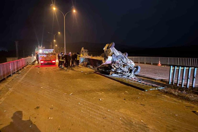 Köprü demirlerine çarpan araç hurdaya döndü: 1 ölü, 3 yaralı