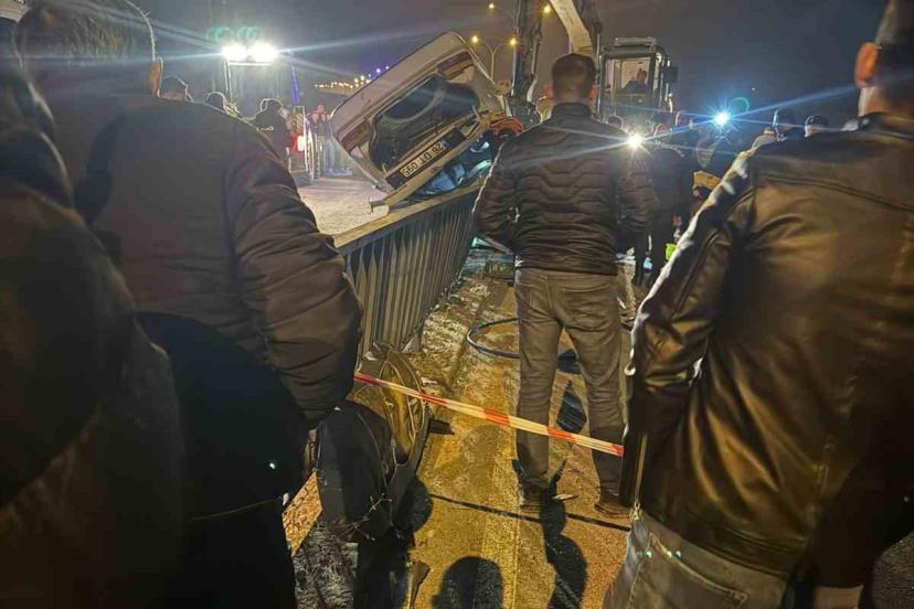 Öte yandan hurdaya dönen araç bölgeye gelen iş makinesi tarafından devrildiği köprü demirlerinin üstünden kaldırıldı.