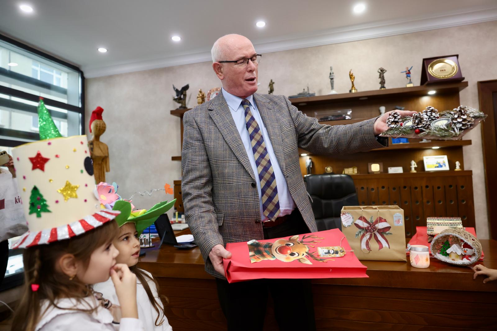 Ziyaret sırasında çocuklar, Başkan Kurt’un odasında bulunan yılbaşı ağacını birlikte süsledi. Renkli süslemeler ve kahkahalar eşliğinde gerçekleşen etkinlikte minikler hem eğlendi hem de keyifli vakit geçirdi. Başkan Kurt, çocuklara yeni yıl hediyeleri verirken, çocuklar da hazırladıkları hediyeleri Başkan Kurt’a takdim etti.