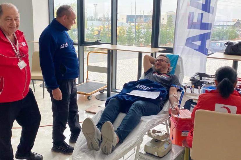 Türk Kızılay’ının desteğiyle İl Müdürlüğü yerleşkesinde düzenlenen etkinlikte, AFAD gönüllüleri ve il müdürlüğü personeli kan bağışında bulundu. Etkinliğe, Türk Kızılayı Genel Merkezi Yönetim Kurulu Üyesi Semra Tozaraydın katılarak, İl Müdürü İsmail Özkan’ı makamında ziyaret etti.