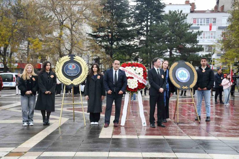 Eskişehir’de 24 Kasım Öğretmenler Günü dolayısıyla Atatürk Anıtı’na çelenkler sunuldu.