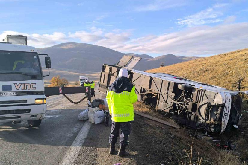Kaza, Dinar ilçesine bağlı Tatarlı beldesi yakınlarında meydana geldi. Edinilen bilgilere göre, A.A. idaresindeki 23 AB 204 plakalı Murat Turizm’e ait yolcu otobüsü bilinmeyen bir nedenden ötürü kontrolden çıkarak şarampole devrildi. Kazada araçta bulunan 25 kişiden 2’si hayatını kaybederken, 21 kişi ise yaralandı. Kazanın ardından bölgeye çok sayıda jandarma, AFAD ve sağlık ekibi sevk edildi. Bölgeye gelen ekipler 2 kişinin hayatını kaybettiğini belirlerken yaralanan 21 kişiyi ambulanslarla bölgedeki hastanelere kaldırdı.