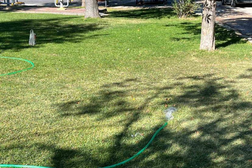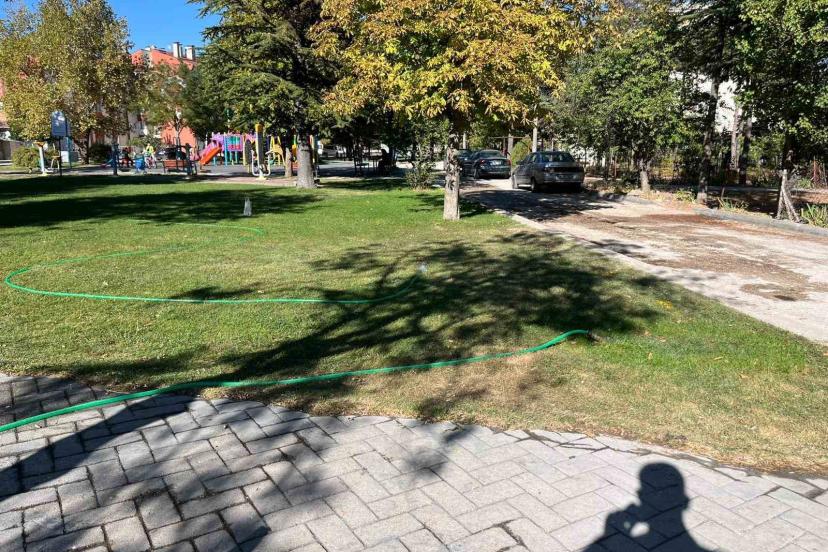 Park sulama hortumundan boşa akan su israfa yol açtı