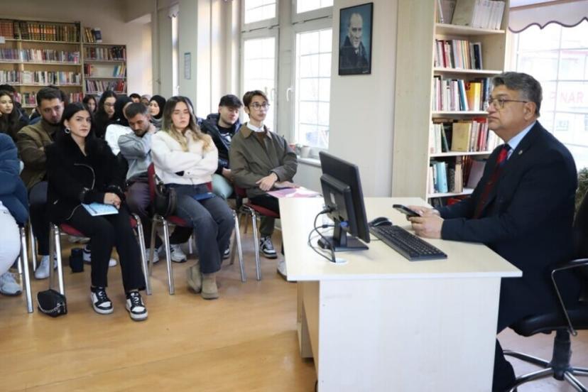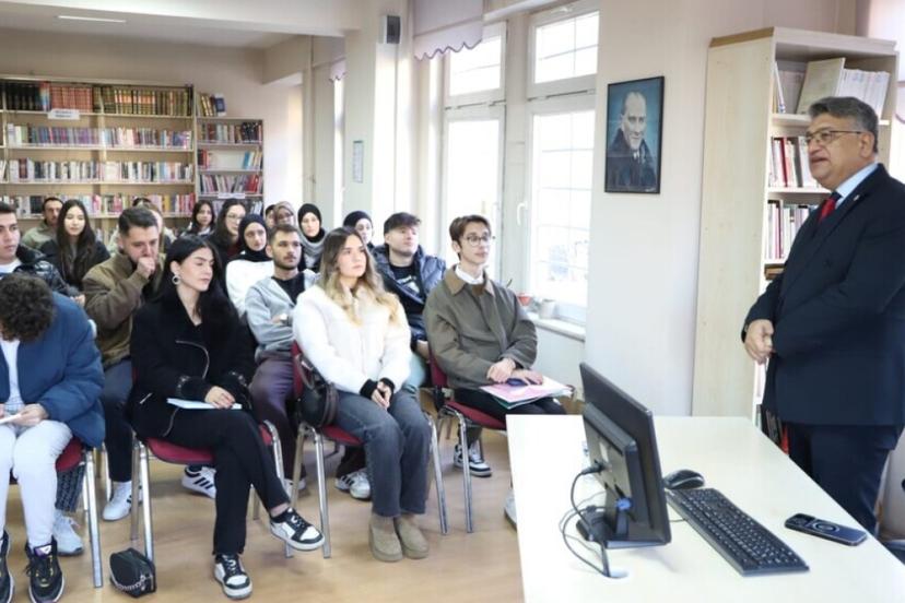 Rektör Kızıltoprak, ’Siyasi Tarih Dersi’ni Mustafa Hakkı Yeşil Kütüphanesi’nde işledi