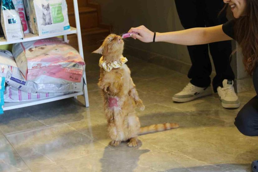 Sıkıştığı motorda bir ayağını kaybeden kediyi üniversite öğrencisi sahiplendi