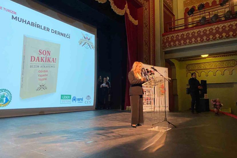 Yalnızca bir kitabı tanıtmadıklarını, bu mesleğe adanmış hayatları, sahadaki acıları, umutları ve gerçeğin peşinde verilen mücadeleyi geleceğe taşıdıklarını ifade eden MUHABİR-DER Başkanı Berrin Yücesan, "’Son Dakika - Bizim Hikayemiz: Gördük, Yaşadık, Yazdık’ 42 gazetecinin sahada yaşadıklarının ortak sesidir. Yağmurun, karın altında, enkazın başında, savaş alanlarında, kimi zaman hayatı pahasına gerçeğin izini süren meslektaşlarımızın kaleminden dökülen hakikatin sesidir. Çünkü sahada attığımız her adım yalnızca bir haber değil, aynı zamanda bir insanlık görebilir bu geceyi özellikle Filistin’de gerçeği dünyaya duyurmaya çalışırken şehit olan, yaralanan tüm gazeteci meslektaşlarımıza adıyoruz. Onların cesareti bize bu mesleğin kutsallığını ve ağırlığını bir kez daha hatırlatıyor" diye konuştu.