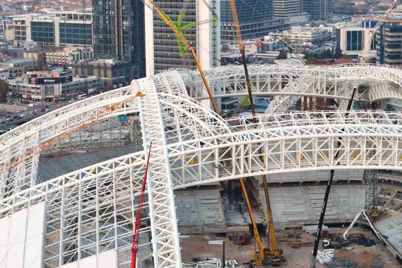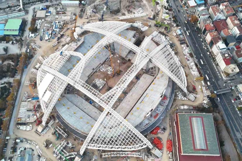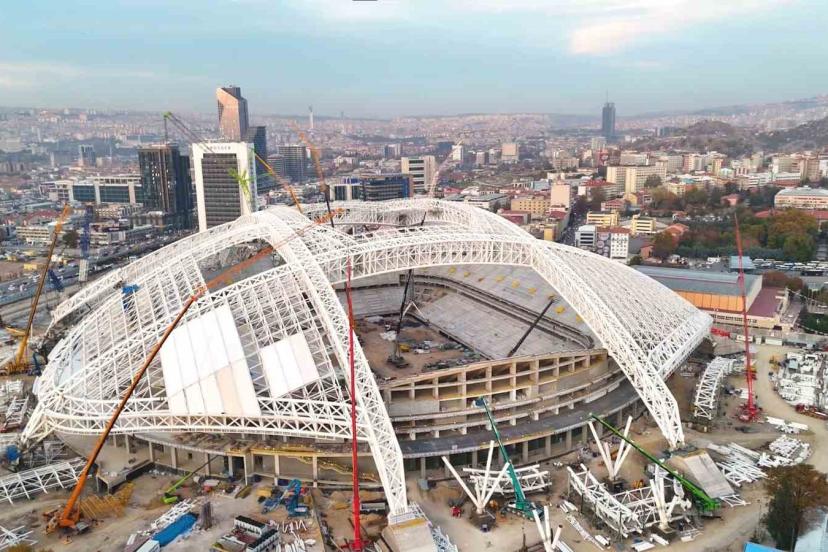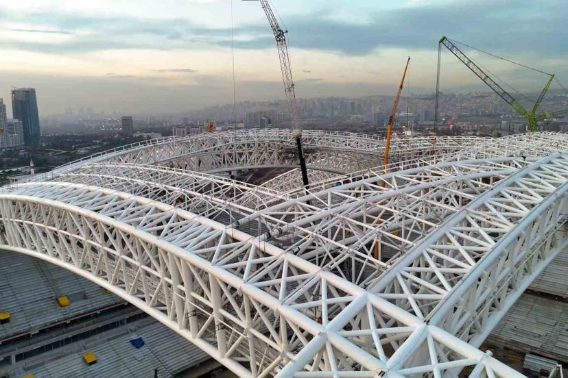 Ankara’nın simgesi olacak 19 Mayıs Stadyumu’nun inşaatı hızla ilerliyor. Drone ile kaydedilen son görüntülerde, stadyumun çelik çatısının montaj aşamasına geldiği ve yapısal iskeletin büyük ölçüde tamamlandığı görüldü.