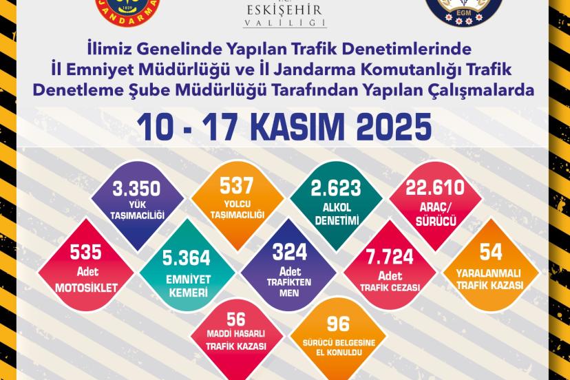 Eskişehir’de 10-17 Kasım tarihleri arasında yapılan trafik denetimlerinde, kurallara uygunluk ve sürücü güvenliği ön planda tutuldu. Denetimlerin artarak devam edeceği bildirildi.