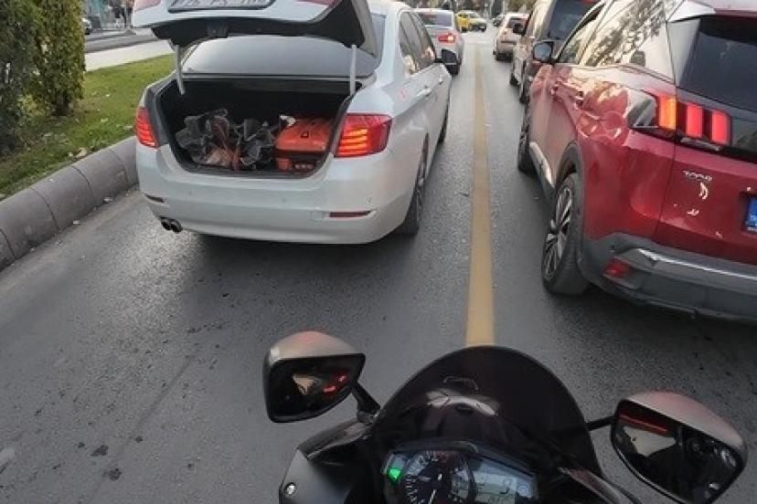 Eskişehir’de trafikte bagajı açık bir şekilde seyreden otomobili görüp sürücüsünü uyaran motosiklet kullanıcısı, rica üzerine...