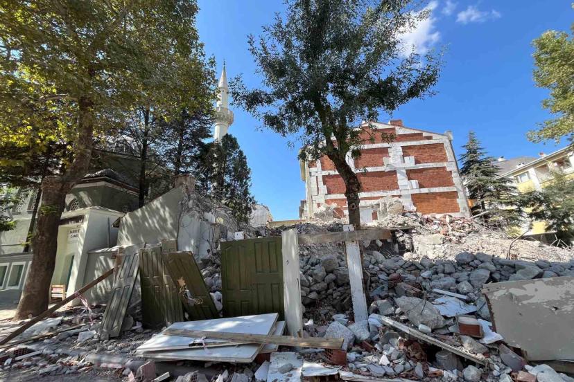 Eskişehir Tepebaşı’nda yürütülen yıkım çalışmasında molozlar, bitişikteki Sarısu Kurşunlu Camii’nin bahçesine döküldü ve bahçe duvarı hasar gördü. Tehlikeye karşı önlem alan yetkililer, hasarlı bölgenin yakınındaki şadırvanı kullanıma kapattı.